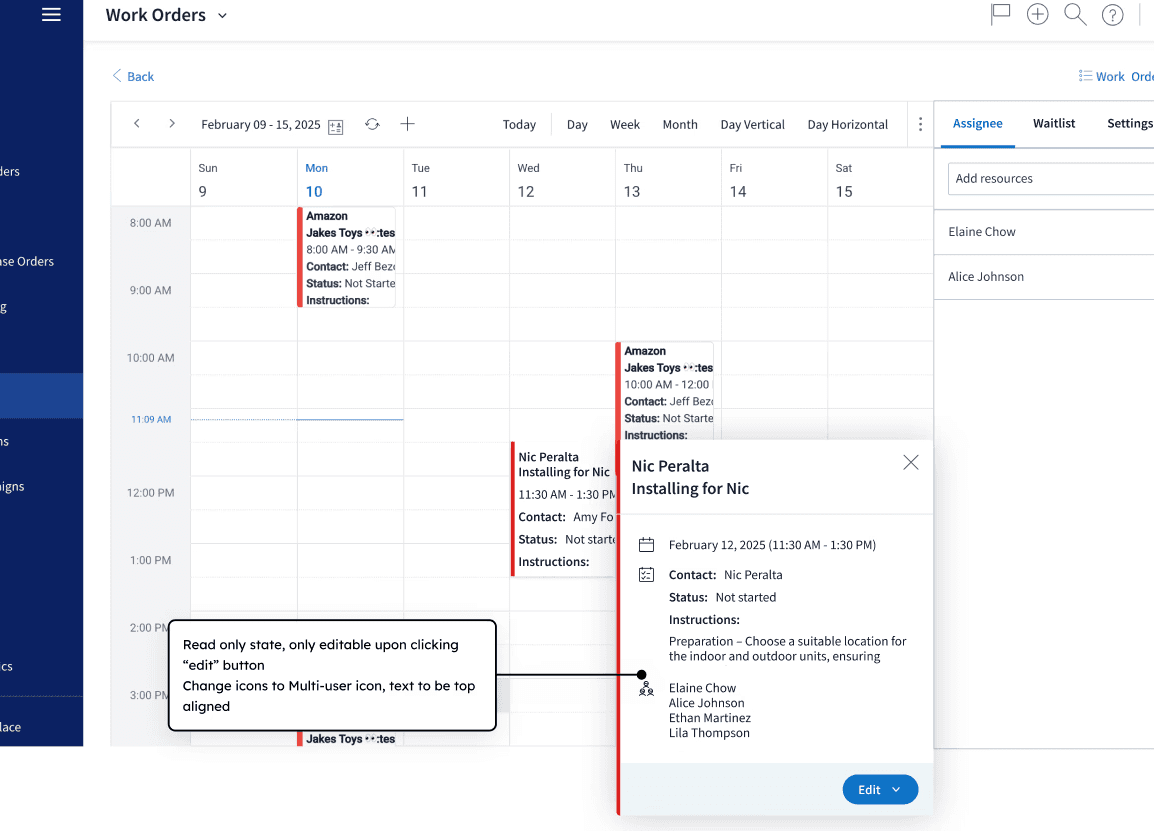 The duplicate work order workaround — one record per technician, 20 hours of custom dev per customer — is replaced by a single work order that represents the team. Work that couldn't be logged without a name can now be created immediately and staffed over time.
