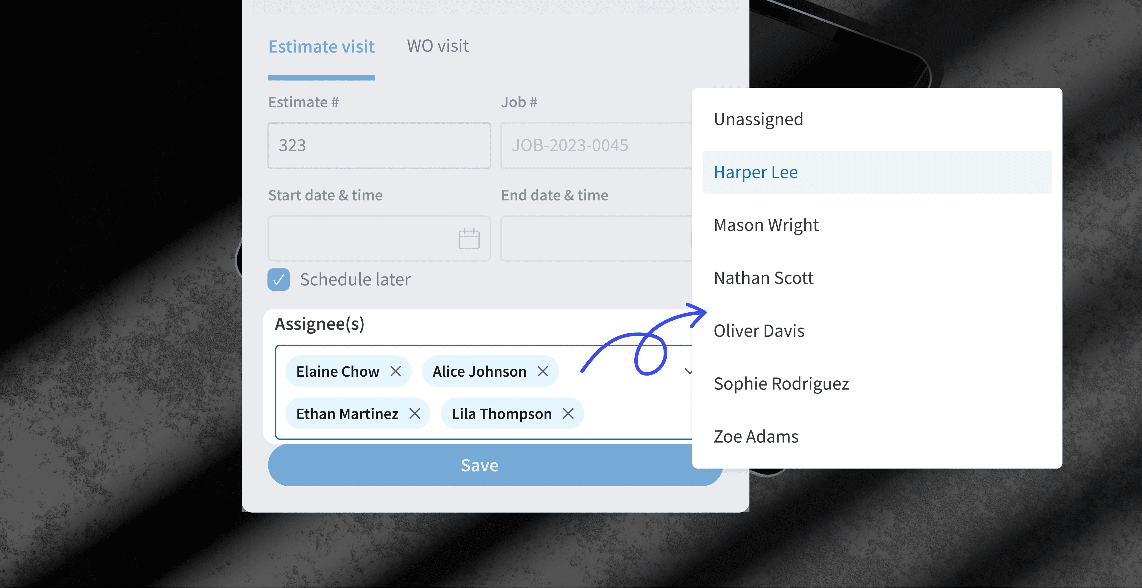 A pool installation needs an estimator and two technicians. An HVAC job needs a senior tech and an apprentice. A time-sensitive repair needs whoever is available — often more than one person.